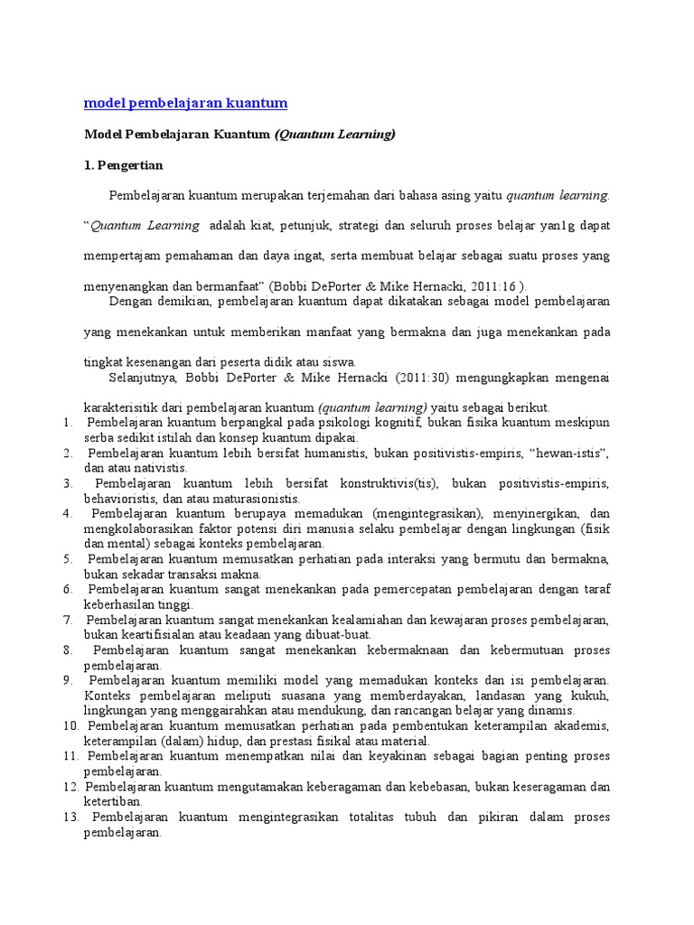Makalah Pendidikan Dan Model Pembelajaran Matematika Model Pembelajaran Quantum Teaching Qt