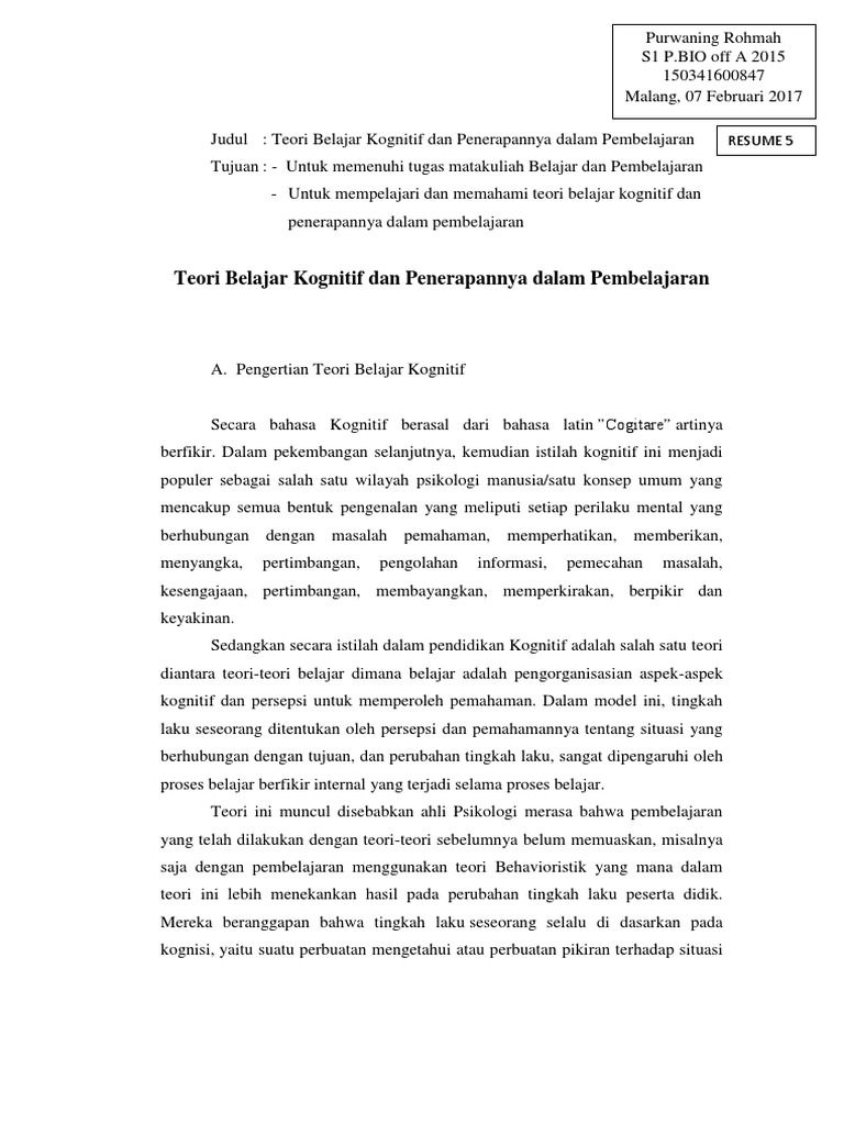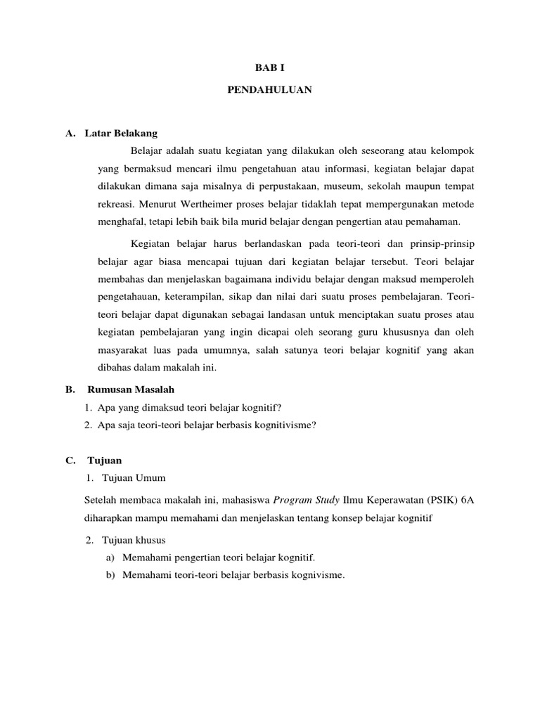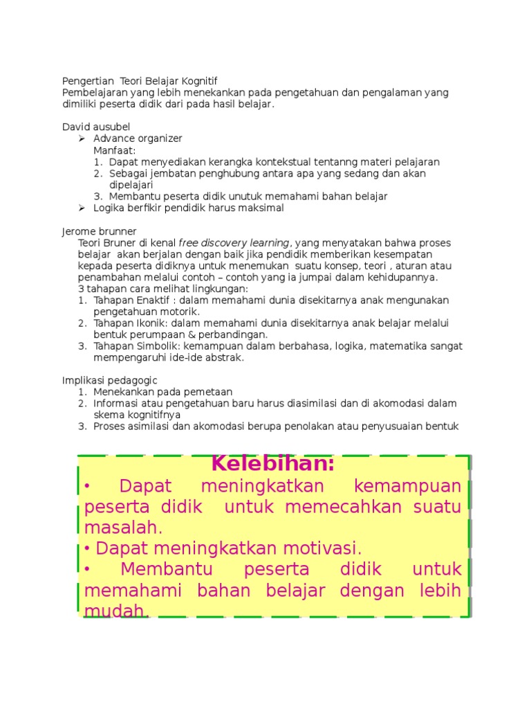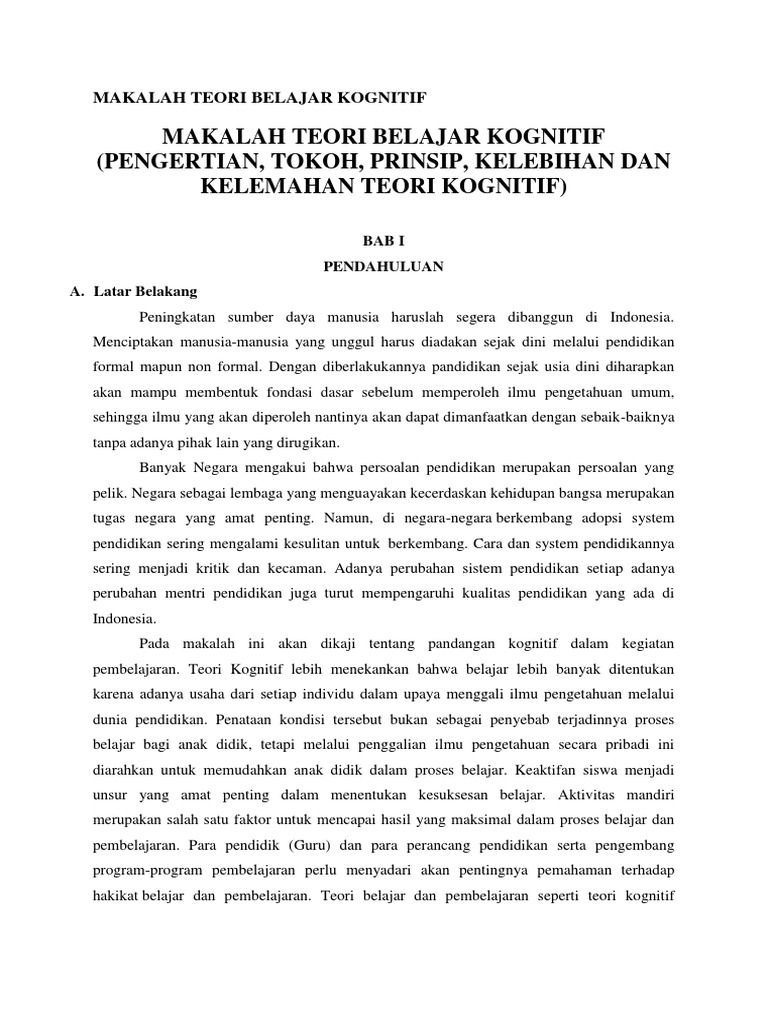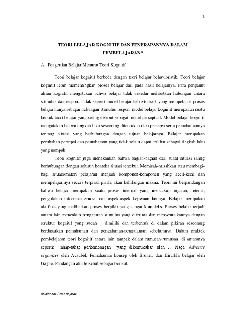 Pengertian Belajar Menurut Teori Belajar Kognitif Pdf Cara Mengajarku