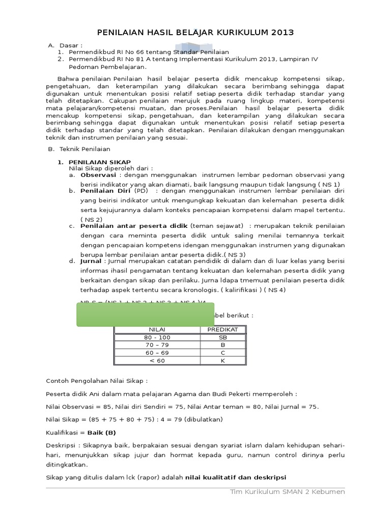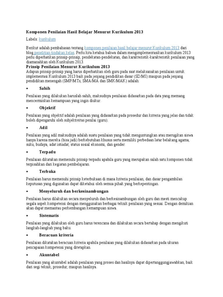 Rancangan Penilaian Hasil Belajar Peserta Didik Kurikulum 2013 Websiteedukasi Com