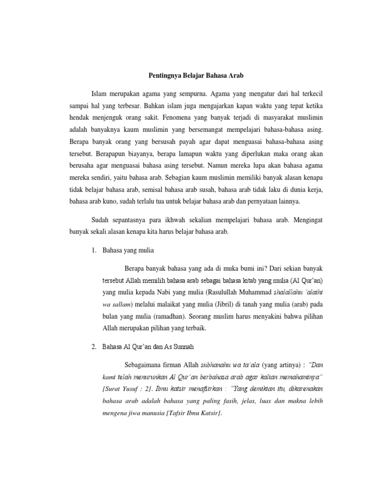 Pentingnya santri menguasai bahasa arab. Pentingnya bahasa arab jika ditinjau dari asfek sejarah kepentingan pada tata bahasa arabmotgomery watt 1990 berpendapat dua kebutuhan praktis memaksa orang untuk mempelajari tata bahasa arab. Pentingnya bahasa arab 1 imam syafii berkata.