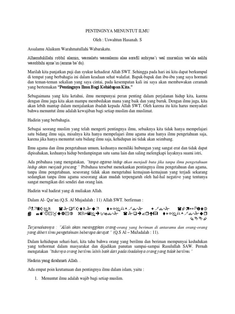 Naskah Khutbah Jumat Bagaimana Pentingnya Belajar Ilmu Agama Bagi Umat Muslim Jurnal Garut