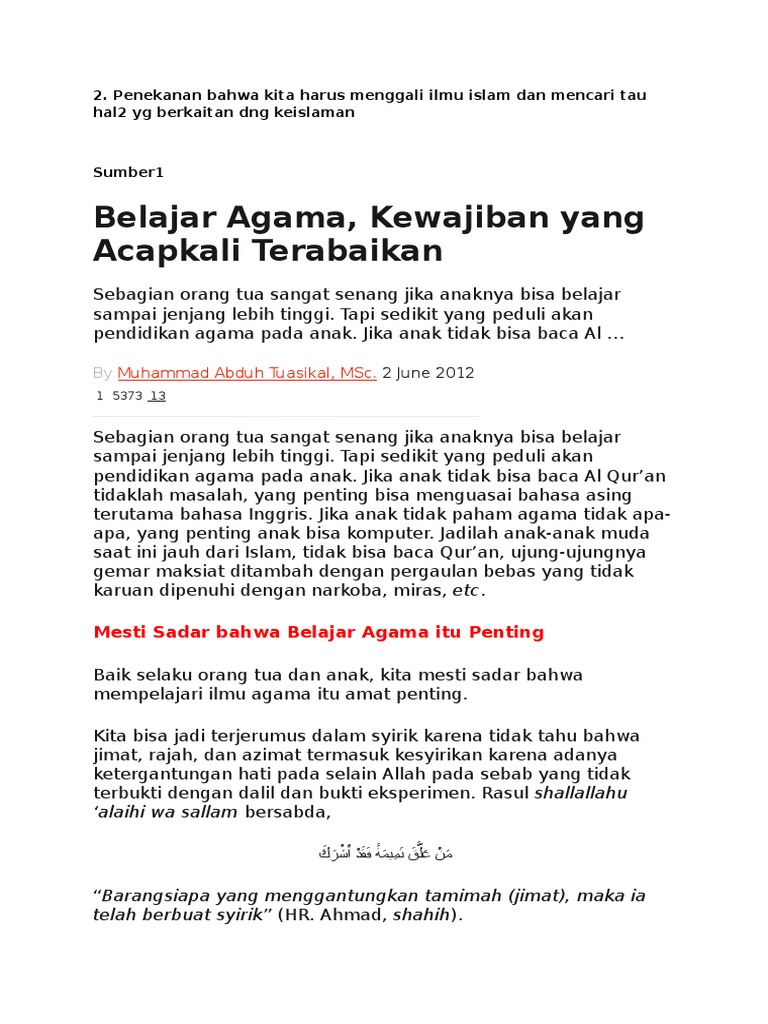 Pentingnya belajar ilmu agama oleh m. Pentingnya kita belajar ilmu agama spiritual. Apa gunanya hidup jika pada akhirnya yg kita dapatkan adalah celaka.