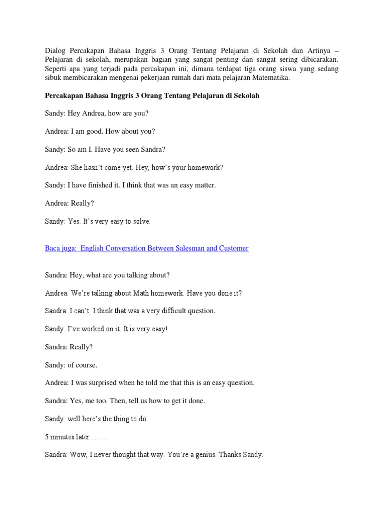 Pdf Berikut Ini Contoh Dialog Percakapan Bahasa Inggris 2 Orang Tentang Liburan Lengkap Dengan Artinya Delina Lena Academia Edu