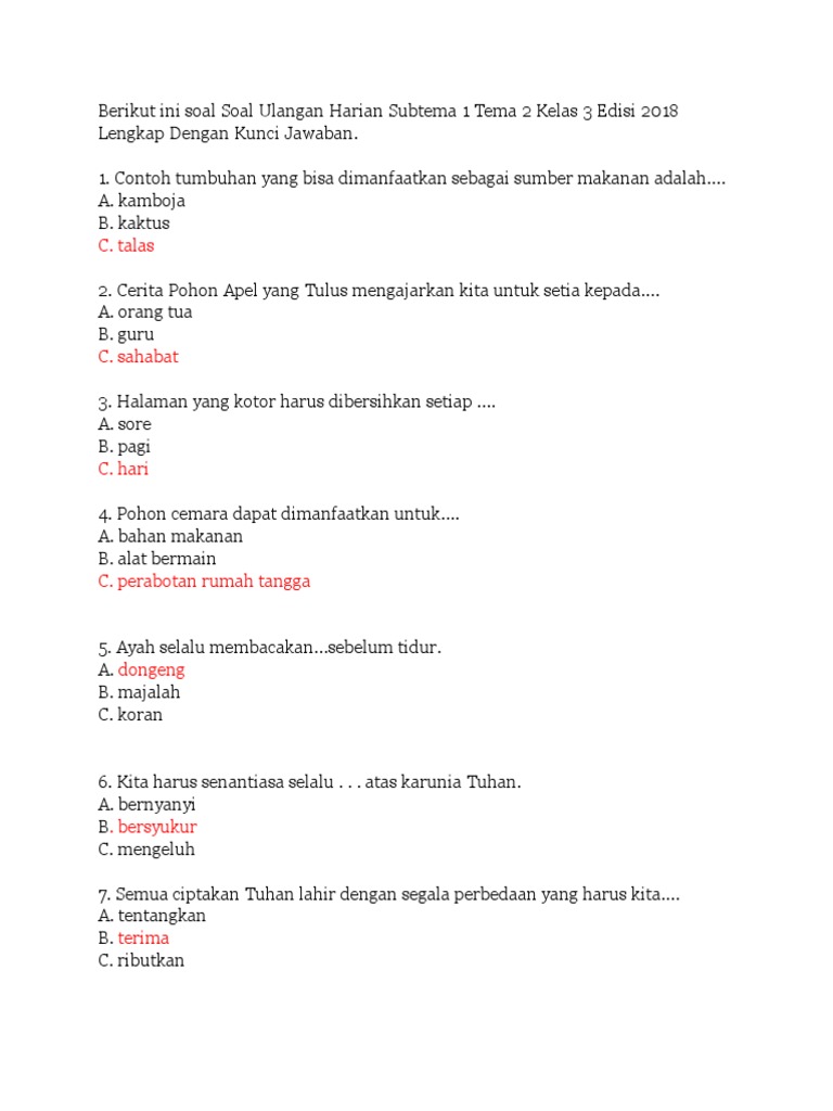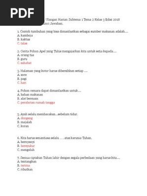 Soal Ulangan Harian Subtema 1 Tema 2 Kelas 3 Edisi Revisi 2018 Lengkap Dengan Kunci Jawaban Riyanpedia