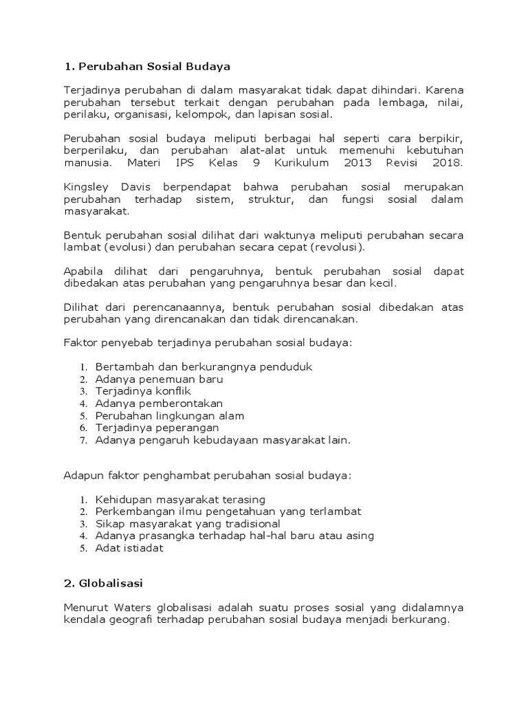 Materi Ips Kelas 9 Perubahan Sosial Budaya Dan Dan Globalisasi Dunia Pendidikan