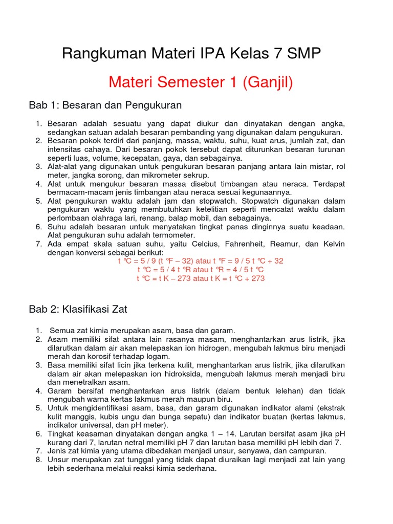 Rangkuman Materi Pelajaran Ipa Kelas 7 Smp Mts Semester 1 2