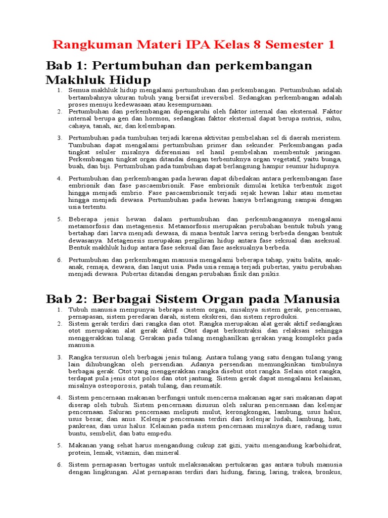Rangkuman Materi Ipa Kelas 9 Smp Mts Semester 1 2 Lengkap