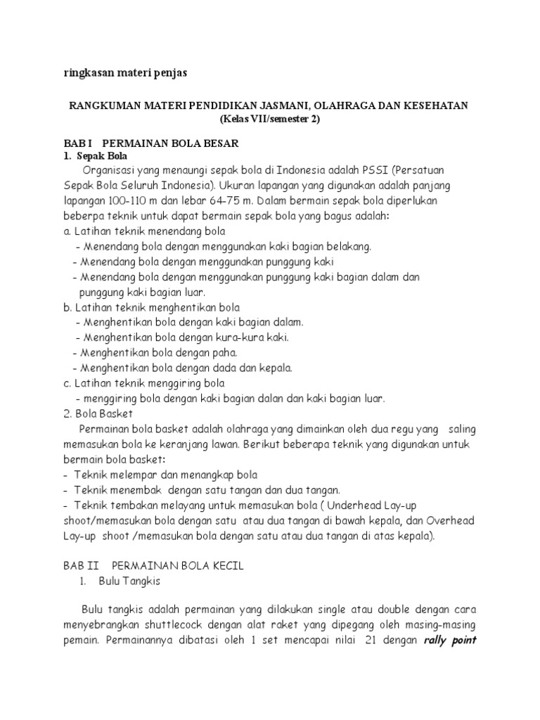 Rangkuman Materi Pelajaran Pjok Kelas 7 Smp Lengkap