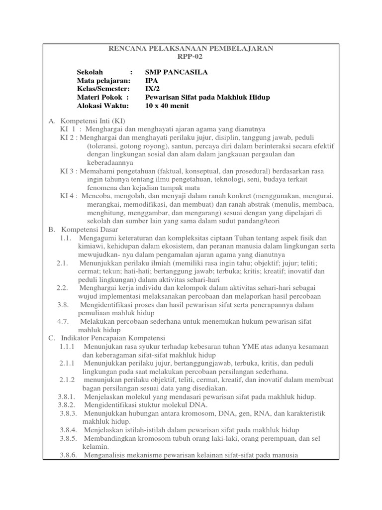 Contoh Rpp Berorientasi Hots Pada Materi Ipa Pewarisan Sifat Pada Makhluk Hidup Kelas Ix Jdsk