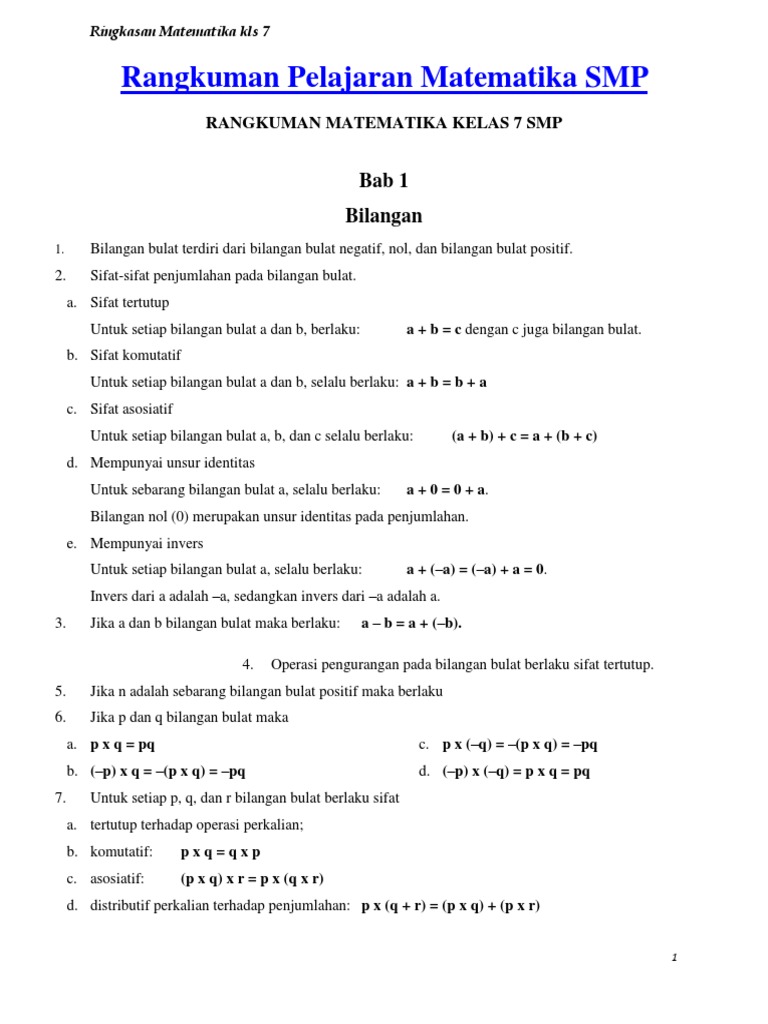 Rangkuman Lengkap Materi Pelajaran Matematika Smp Kelas 7 Jagoan Bahasa Inggris