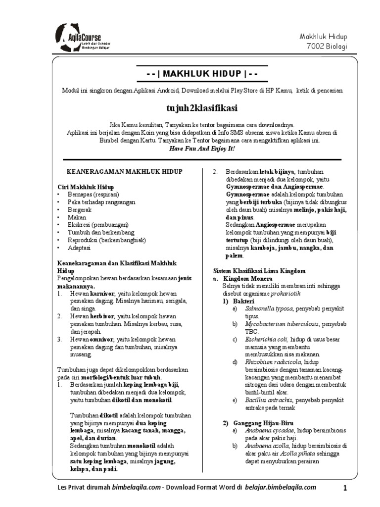 Ringkasan materi ipa kelas 7 tentang klasifikasi makhluk hidup. Pernyataan berikut ini yang bukan merupakan ciri makhluk hidup adalah. Materi biologi kelas vii. Rangkuman kali ini akan membahas bab 2 yaitu klasifikasi makhluk hidup.