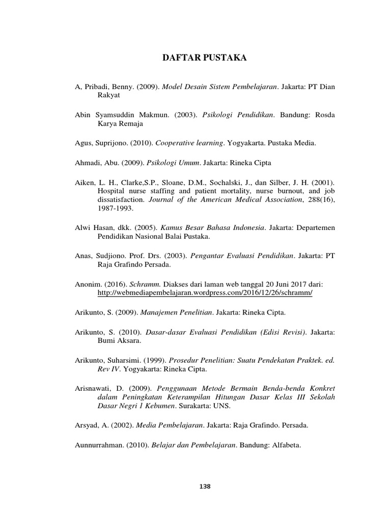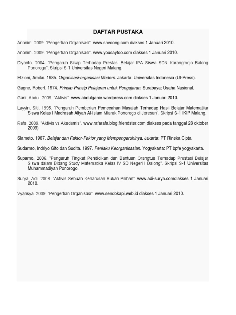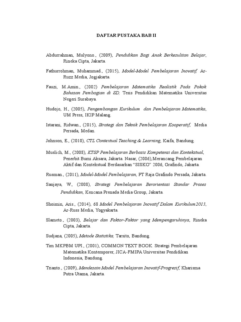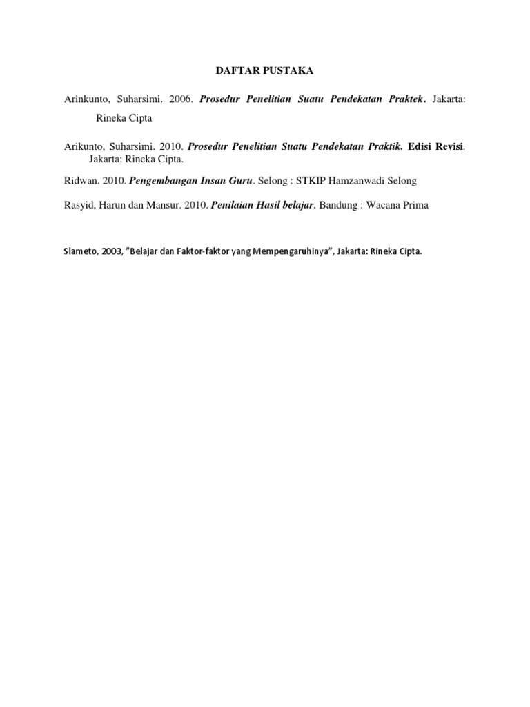 Daftar Pustaka Pustaka Sudjana Nana 2004 Dasar Dasar Proses Belajar Mengajar Thursan Hakim 2005 Belajar Secara Efektif Jakarta Puspa Swara Slameto 2003