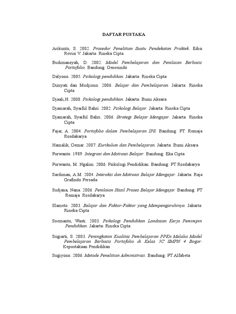 Daftar Pustaka Selamat Datang Digital Daftar Prof 2002 Metoda Statistika Tarsito Bandung Suryabrata Sumadi 2008 Psikologi Pendidikan Raja Grafindo Persada Jakarta