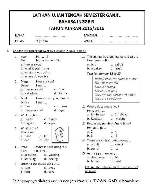 Contoh Soal Uts Semester Ganjil Bahasa Inggris Sd Kelas 5 Belajar Bahasa Inggris Online Gratis