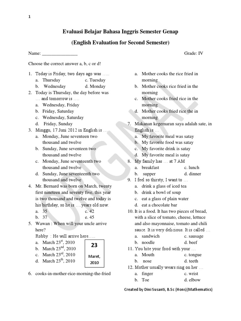 Kumpulan Soal Ujian Bahasa Inggris Kelas 4 Sd Kegunaan Kumpulan Soal Ujian Bahasa Inggris Kelas 4 Sd Kegunaan Gamessers S Blog