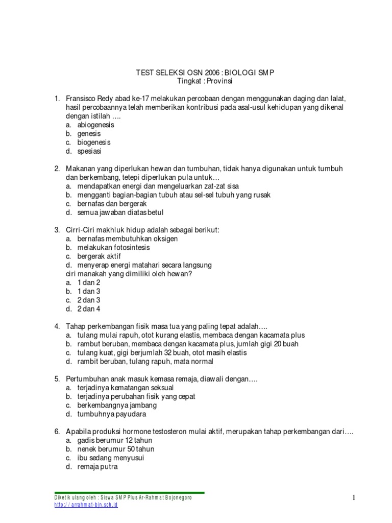 Bank Soal Olimpiade Sains Smp Biologi Fisika Kimia Spring Camp Persiapan Osn 2018