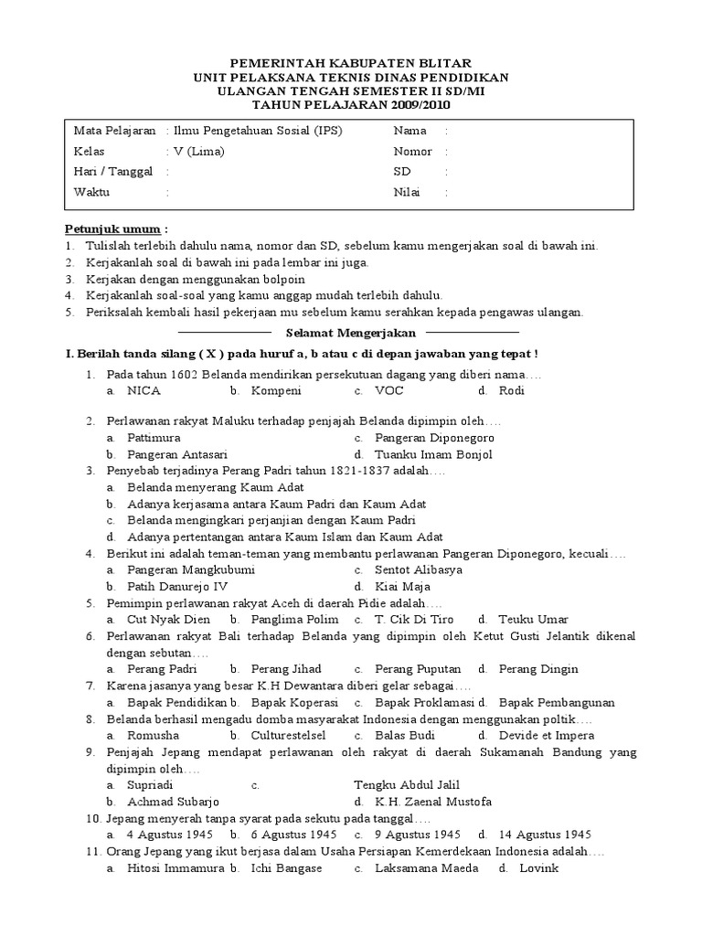 40 Soal Ips Kelas 5 Sd Semester 2 Dan Kunci Jawaban Terbaru Muttaqin Id