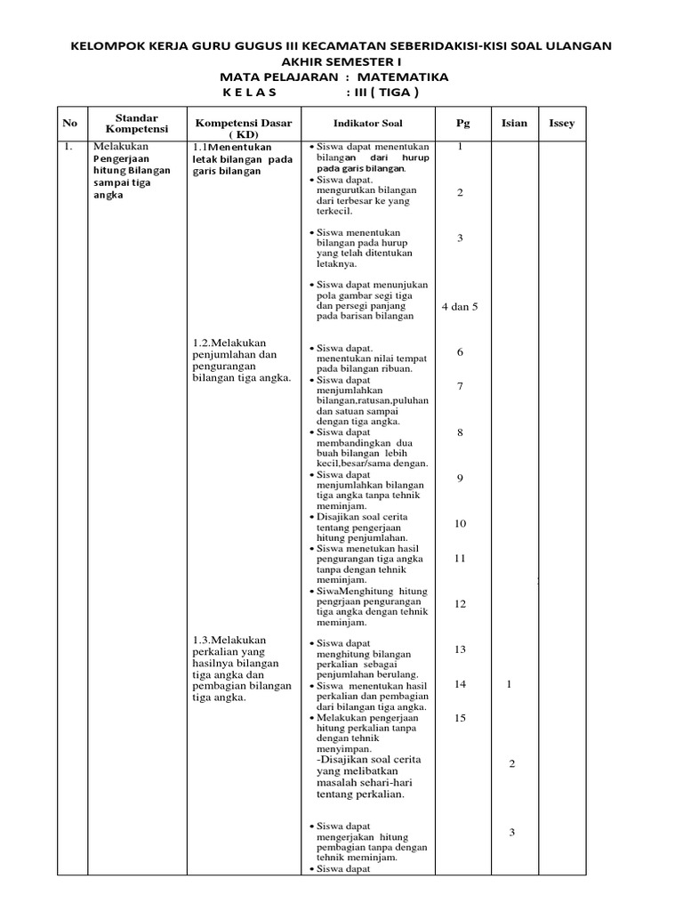 Kisi Kisi Soal Uts Matematika Kelas 3 Sd Semester 2 Ktsp Idn Paperplane