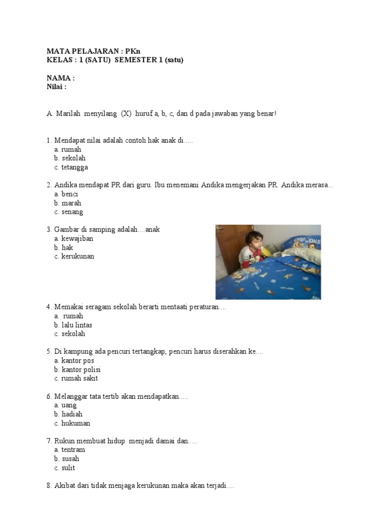 Pdf Soal Uas Kelas 1 Tema Untung Punya Academia Edu
