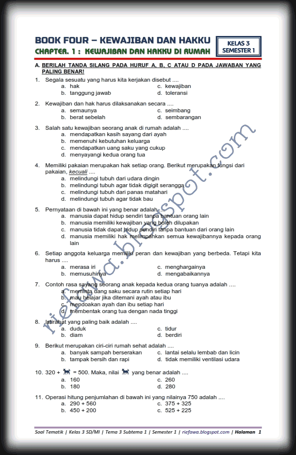 Kunci Jawaban Tema 4 Kelas 3 Kewajiban Dan Hakku Buku Tematik Kurikulum 2013 Ruang Edukasi