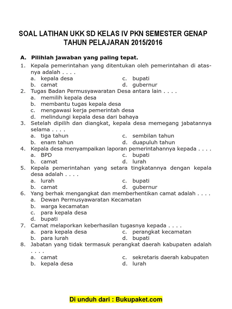 Kumpulan Soal Pkn Kelas 4 Empat Sd Lengkap Semester 1 2 Dan Kunci Jawabannya Bimbel Brilian