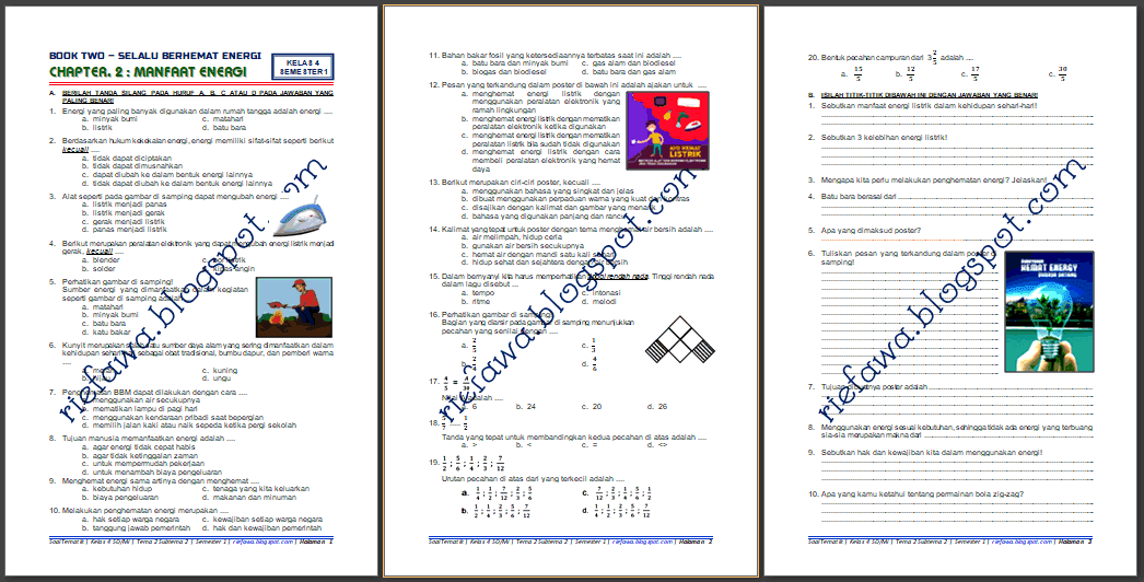 Download Soal Tematik Kelas 4 Semester 1 Tema 2 Subtema 2 Selalu Berhemat Energi Manfaat Energi Edisi Terbaru 2019 Dunia Edukasi
