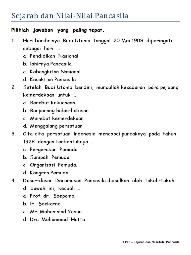 Soal Ulangan Harian Pkn Kelas 6 Nilai Nilai Perjuangan Dalam Perumusan Pancasila Belajar Kurikulum 2013