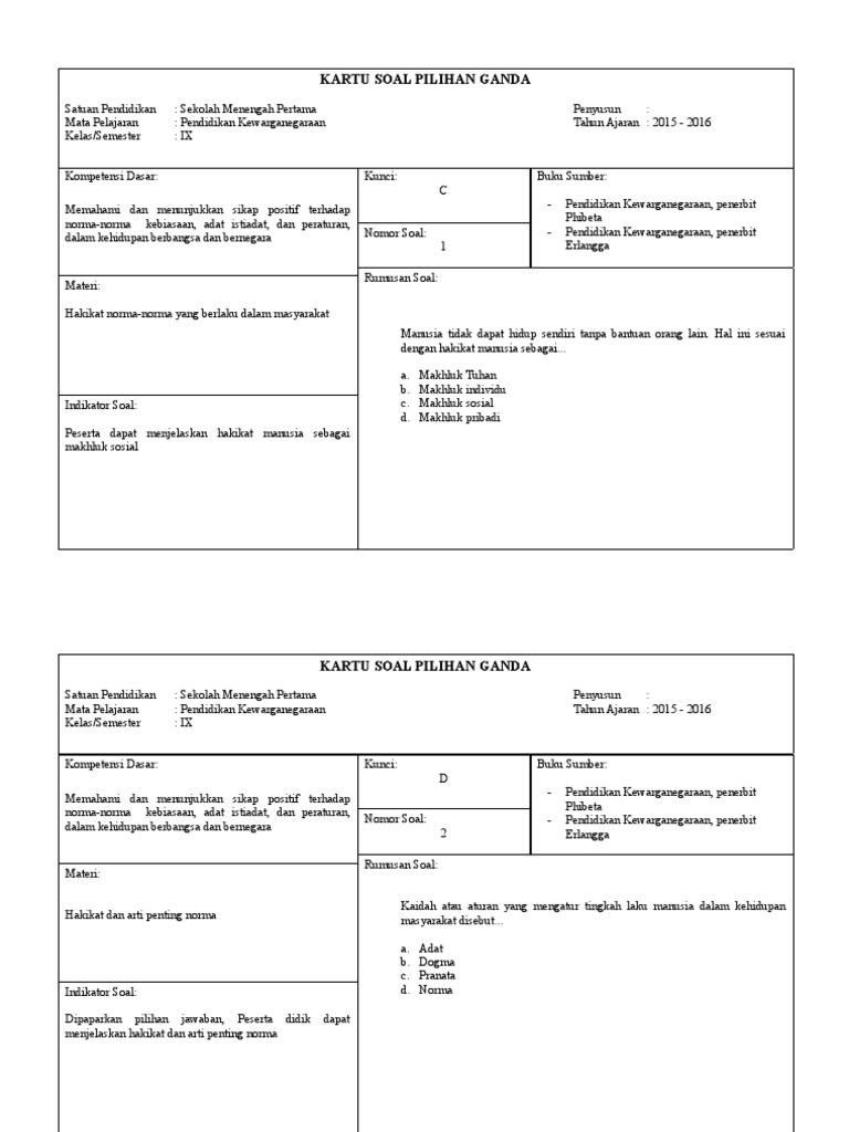 Soal Usbn Smp Pkn 2017 Dan Kunci Jawaban Pkn Kelas 7 Soal Pts Pkn Contoh Soal Pts Pkn Smp Mts Pdf Document
