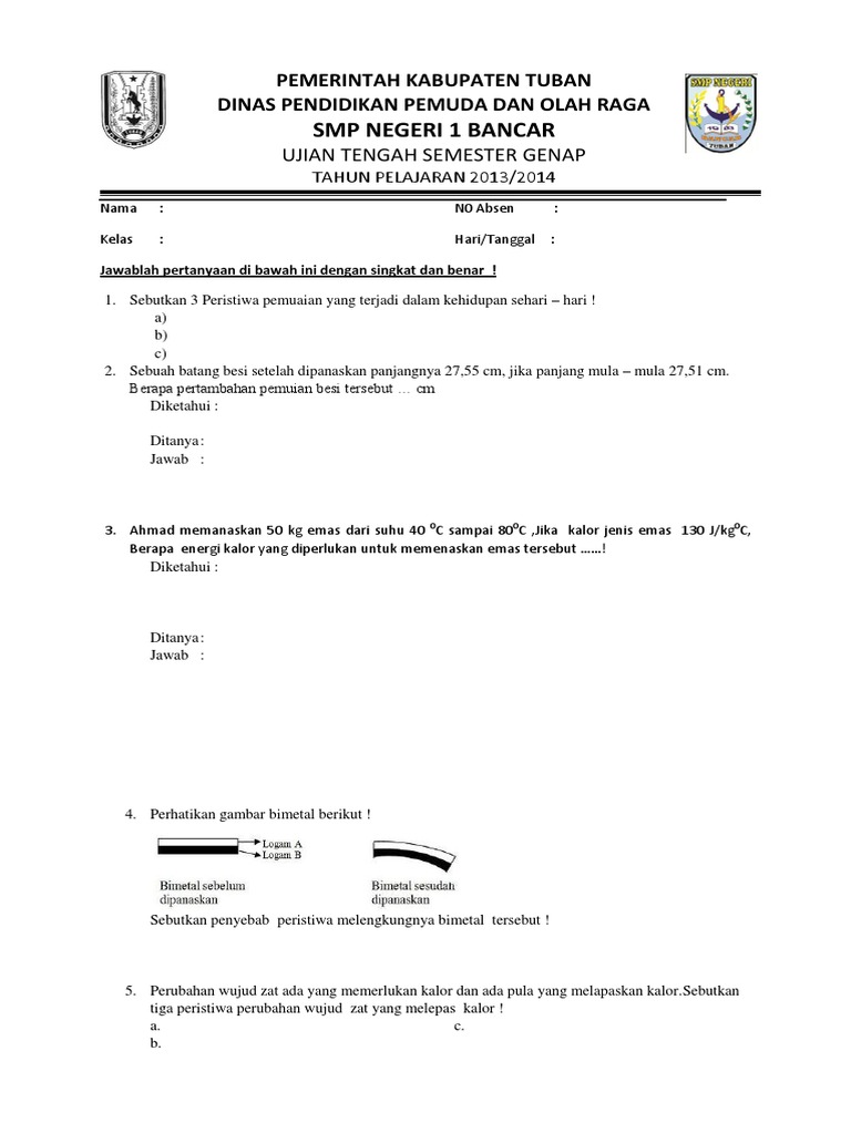 Kisi Kisi Soal Dan Jawaban Ipa Smp Kelas 7 Semester Genap Kurikulum 2013 Didno76 Com
