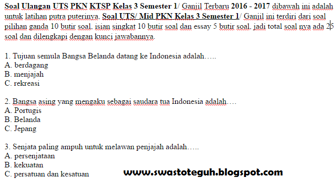 Soal Uas Pkn Kelas 3 Sd Semester 1 Ganjil Dan Kunci Jawaban Bimbel Brilian