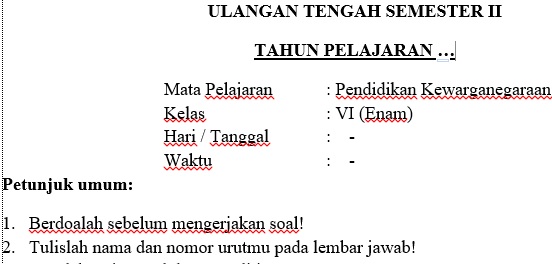 Soal Jawaban Soal Uts Pkn Kelas 6 Semester Ii