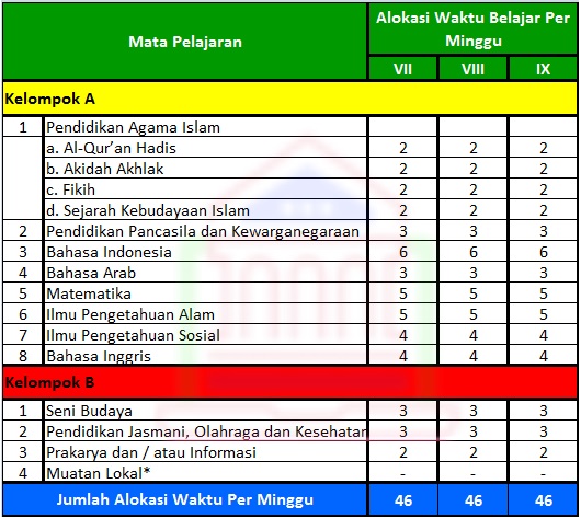 Struktur Kurikulum Madrasah Tsanawiyah Mts Tahun 2020 2021 Sesuai Kma Nomor 184 Tahun 2019 Ruang Pendidikan