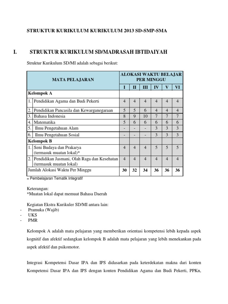 Struktur Kurikulum 2013 Sd Mi Sekolah Dasar Madrasah Ibtidaiyah Berdasarkan Permendikbud Nomor 67 Tahun 2013 Salam Edukasi