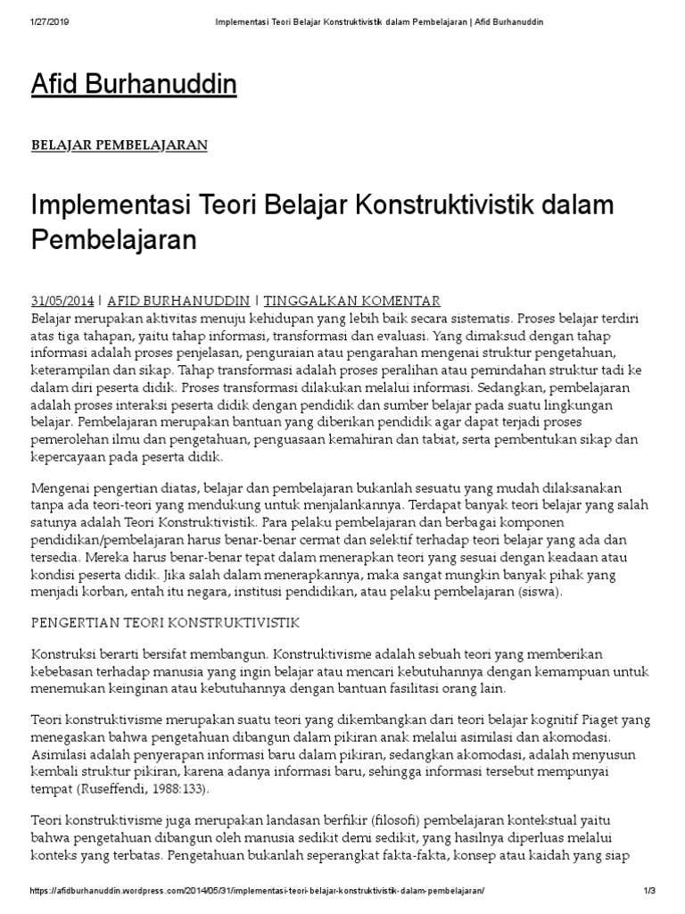 Pdf Penerapan Teori Konstruktivistik Pada Pembelajaran Bahasa Arab Di Kelompok 28 Program Intensifikasi Bahasa Arab Iain Syekh Nurjati Cirebon