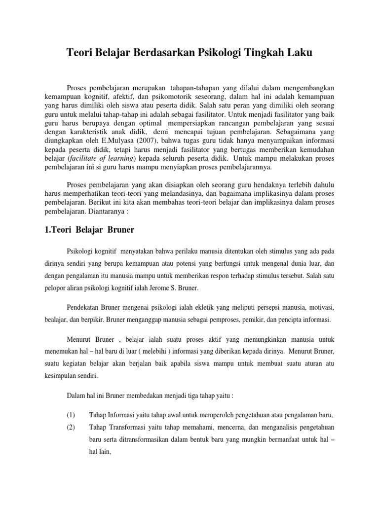 Ii Kajian Pustaka 2 1 Teori Belajar Dan Pembelajaran Teori
