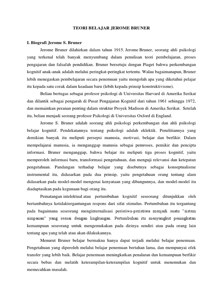 Teori Belajar Bruner Biografi Jerome S Bruner Nina Math