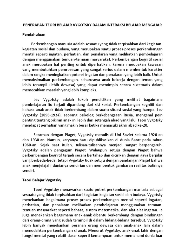 Teori Belajar Konstruktivisme Vygotsky Dalam Pembelajaran