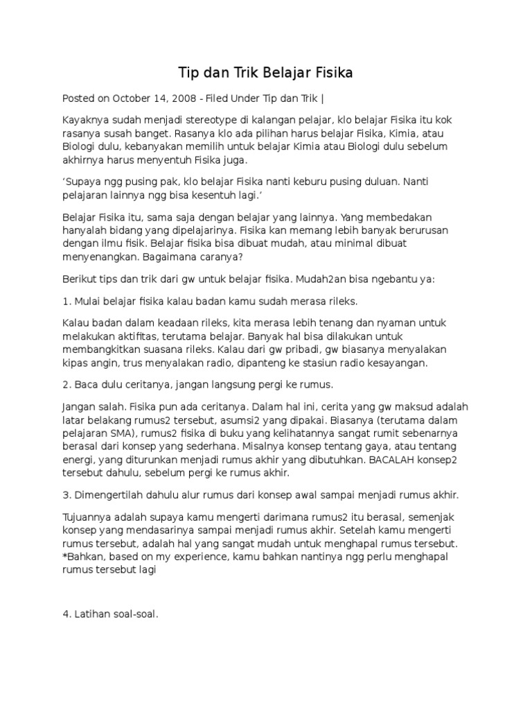 Arika Surabaya Jawa Timur Tips And Trick Belajar Fisika Cepat Tanpa Menghafal Rumus Tanya Jawab Soal Un Sbmptn Um Atau Pr
