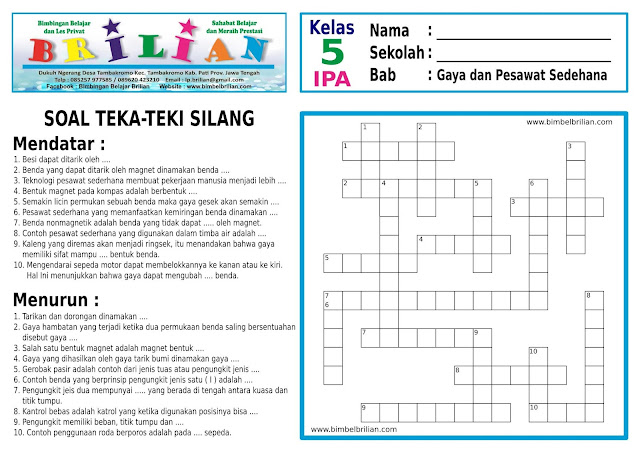 Soal tts teka teki silang ipa sd kelas 5 bab 4 sifat dan perubahan wujud benda dan kunci jawaba 14 november 2017 admin bimbel brilian 2 komentar soal teka teki silang mendatar 1. Baca juga. Sawah kebun dan aquarium adalah contoh ekosistem.
