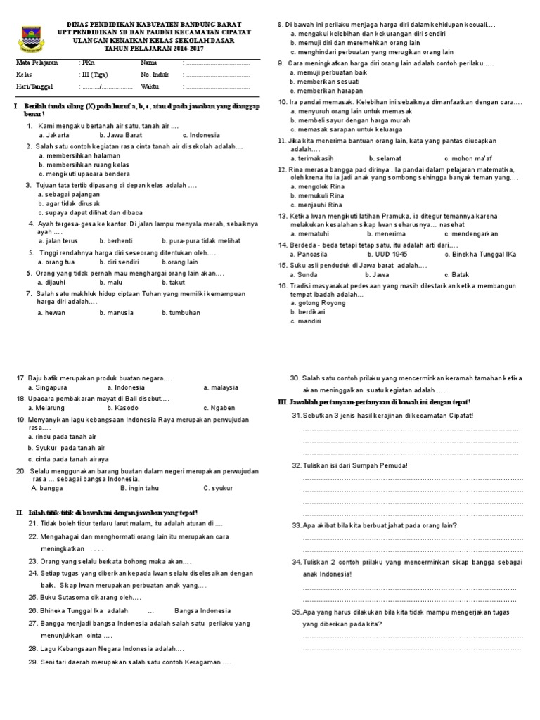 Sedangkan untuk jawaban isian dan pertanyaan soal uts pkn kelas 3 sd dibawah ini. Soal kelas 3 tema 8 subtema 3 tugas online kumpulan soal tematik model daring kurikulum 2013 kelas 3 sd semester genap tahun 20202021 dan kunci jawaban. Berikut ini kunci jawaban untuk soal latihan uts mata pelajaran pkn yang terdiri dari 40 pilihan dan 25 isian untuk kalian yang masih duduk di kelas 3 semester 1.