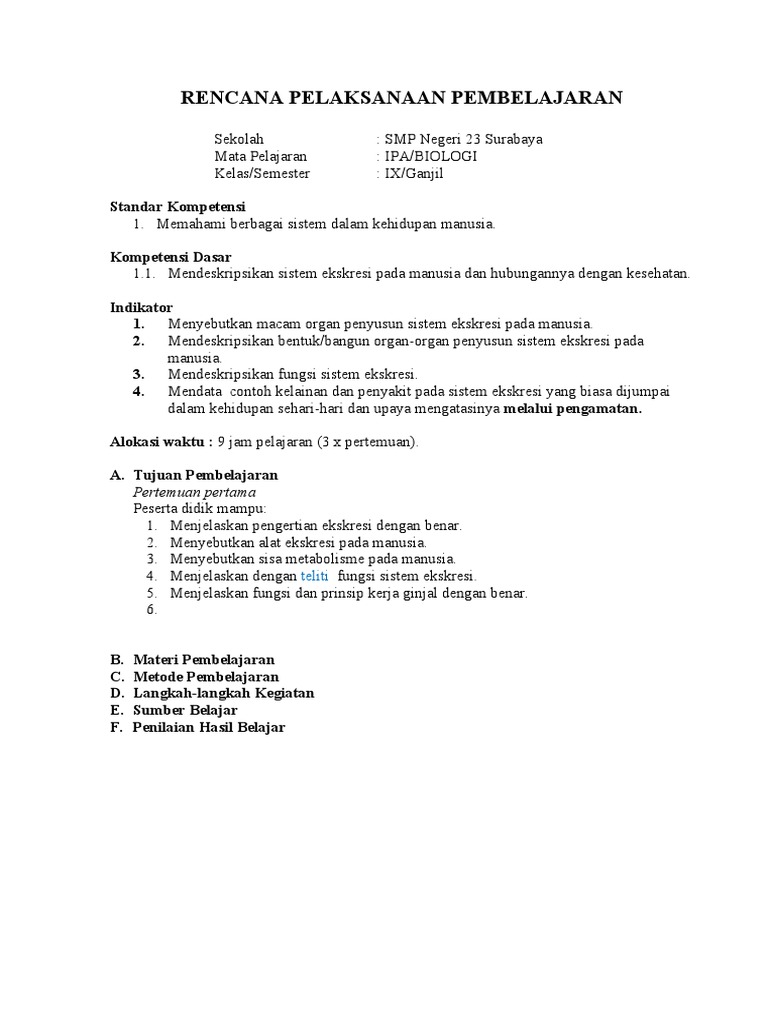 Download Contoh Rpp Ipa 1 Satu Lembar Smp Tahun 2020 Infoguruku