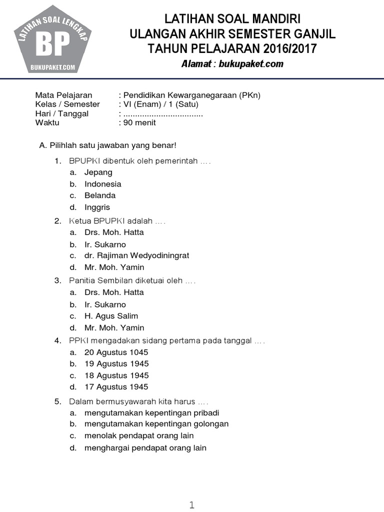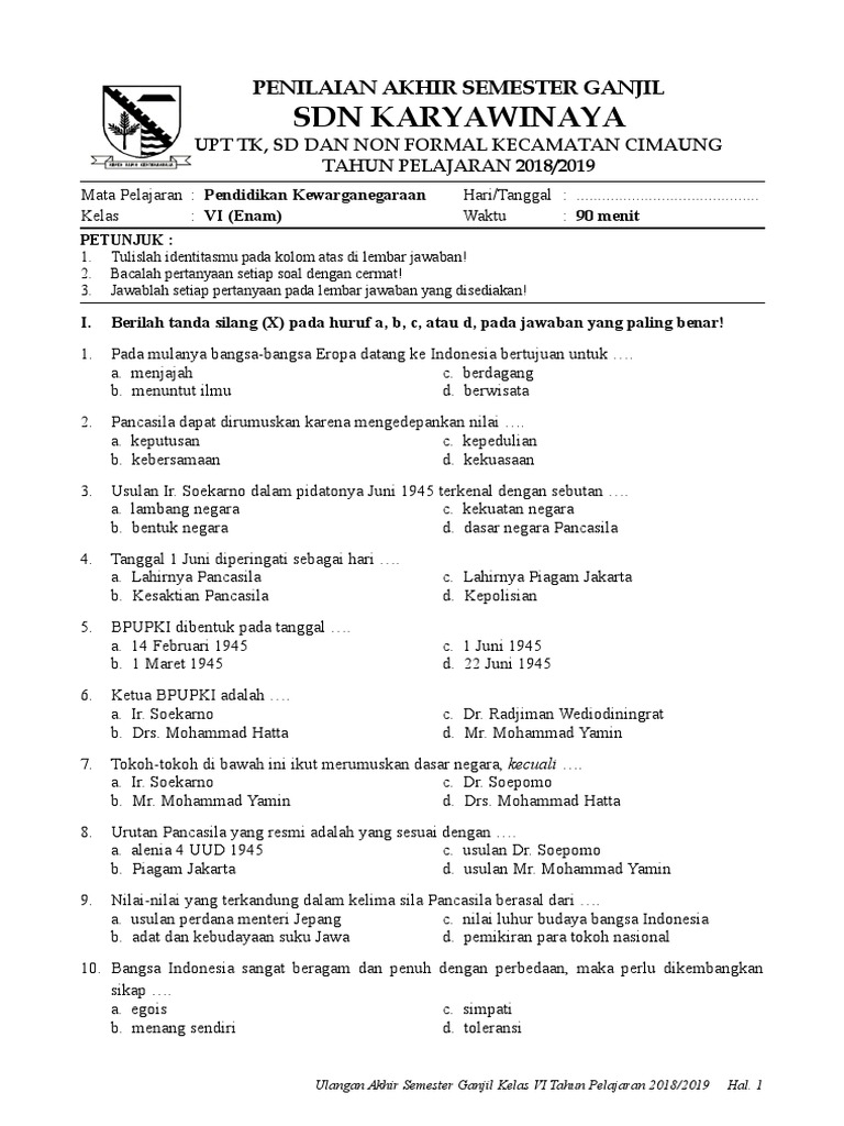 Materi Soal Ulangan Uts Pkn Kelas 6 Semester 2 Genap Terbaru